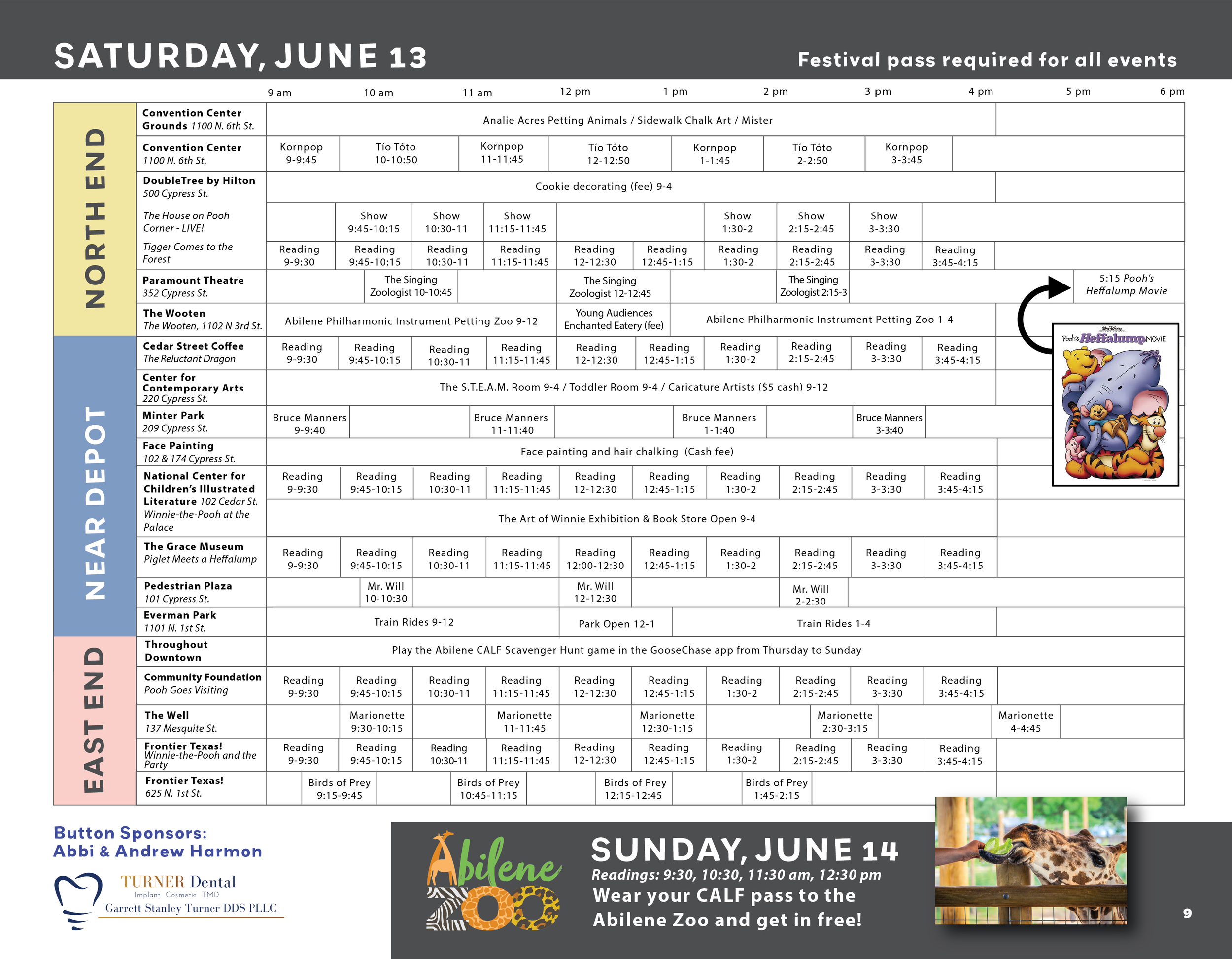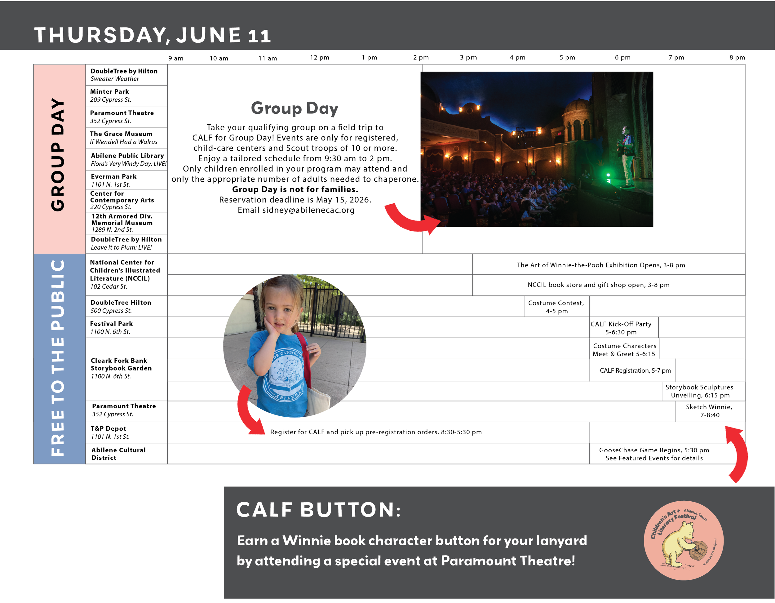 If this is your first time at CALF, please check out our sample schedules made by festival expert and mom Natalie! We have a sample schedule if you only have one day to spend at CALF, two days, three days and a schedule if you want to do the bonus Abilene Zoo experience on the fourth day. Download the schedules below! Send your feedback to info@abilenecac.org